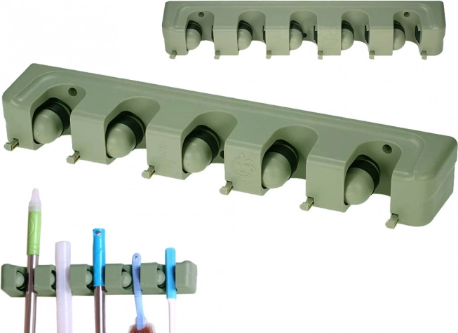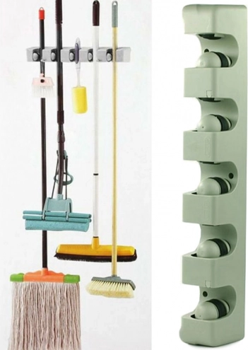 Stenski nosilec za mopa in metle je idealen pomočnik za vsako gospodinjstvo ali garažo. S petimi nastavljivimi režami in šestimi majhnimi kaveljčki ponuja dovolj prostora za shranjevanje krtač, mopov in drugih čistilnih orodij. Izdelan iz trpežne plastike, trdno drži različne premeri palic, zato je primeren za širok nabor gospodinjskih in vrtnarskih potreb.