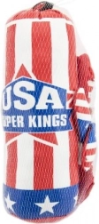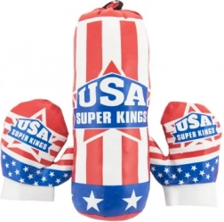 Ta otroški boksarski komplet je odlična izbira za prve korake v svet boksa. Zaradi manjših dimenzij je primeren za otroško sobo in domači trening. Barvit motiv ameriške zastave otroke pritegne in spodbuja k gibanju.