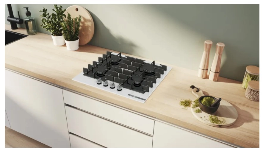 Popoln nadzor nad plinsko kuhalno ploščo. S kuhalno ploščo Bosch FlameSelect lahko enostavno in natančno uravnavate intenzivnost plamena, kar zagotavlja popolne rezultate kuhanja. Na voljo je devet stopenj plamena, idealnih za cvrtje, dušenje in kuhanje.