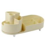 Vrtljiv organizator je opremljen z mehanizmom, ki se vrti za 360°, kar zagotavlja hiter in enostaven dostop do vsebine. Idealen je kot posoda za čopiče za ličenje, šminke, korektorje, stekleničke parfumov, pa tudi kot organizator za svinčnike, škarje, flomastre, markerje, sponke in druge drobne pisarniške pripomočke.
