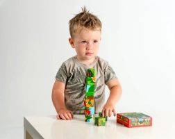 Lesene kocke s pisanimi slikami živali so idealne za najmlajše otroke. Pomagajo razvijati logično razmišljanje, domišljijo in fino motoriko.