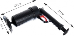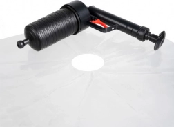 tlačni bat/pištola, 4 nastavki (WC, umivalnik, korito, odtok), zaščitna folija z odprtino za WC