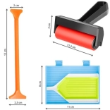 4 aplikatorji (“peresa”), organizator za kristalčke, pritisni valjček, pinceta, lepilo, torba za orodje, 3 posodice, samolepke za označevanje predelkov