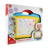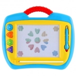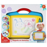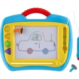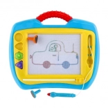 Magnetna tablica je odlična alternativa papirju – otroci lahko rišejo znova in znova, brez flomastrov in brez madežev. Zahvaljujoč praktični pomični gumi/drsniku se risba preprosto izbriše in prostor je pripravljen za novo delo. Trpežna plastična izvedba z ročajem olajša prenašanje.