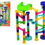Ta barvita kroglična steza je idealna za majhne otroke, ki radi gradijo in eksperimentirajo. Gradbeni set je zasnovan tako, da lahko otroci sestavljajo steze na različne načine po svoji domišljiji. Sestavljanje steze vadi fino motoriko in podpira logično razmišljanje.