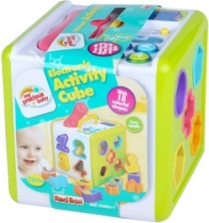Kocka je opremljena s svetlobnimi in zvočnimi učinki, ki obogatijo izkušnjo igranja in pomagajo pri razvoju otrokovega čutnega zaznavanja. Poleg tega je zaradi praktičnega ročaja enostavno prenašati.