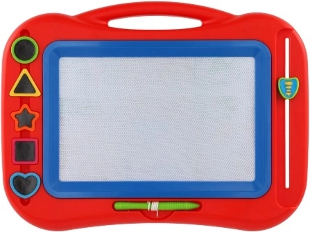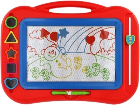 Vsako idejo spremenite v risbo – ta barvita magnetna tabla otrokom omogoča risanje, žigosanje in preizkušanje novih oblik znova in znova. Z enim potegom po brisalnem traku je površina v hipu čista. Idealna za dom, vrtec in na poti – brez barv, papirja in madežev.