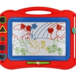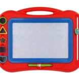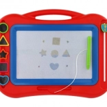 Vsako idejo spremenite v risbo – ta barvita magnetna tabla otrokom omogoča risanje, žigosanje in preizkušanje novih oblik znova in znova. Z enim potegom po brisalnem traku je površina v hipu čista. Idealna za dom, vrtec in na poti – brez barv, papirja in madežev.