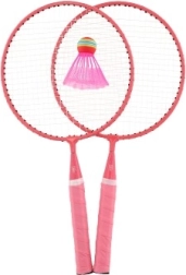 Lahek in zabaven otroški badminton komplet z 2 loparjema in 1 žogico je idealen za rekreativno igro na vrtu, igrišču ali na počitnicah. Kombinacija kovine in plastike zagotavlja vzdržljivost in enostavno upravljanje za male igralce. Praktično pakiranje v mreži olajša prenašanje in shranjevanje. Primerno za otroke od 3 let naprej.