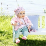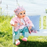 Dodajte igri mamice pridih z kolesarskim kompletom za punčko Baby Annabell. Stajliš komplet v živahnih barvah spremeni vsak izlet v veliko pustolovščino ter spodbuja ustvarjalno in domiselno igro. Kakovostna izdelava, enostavno oblačenje in dodatki, kot so sončna očala, čepica/čeladica in lahka jakna, poskrbijo, da bo vaša punčka vedno oblečena udobno in trendovsko.