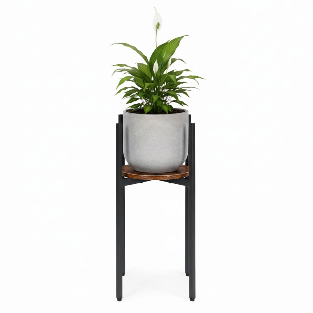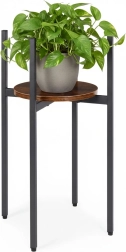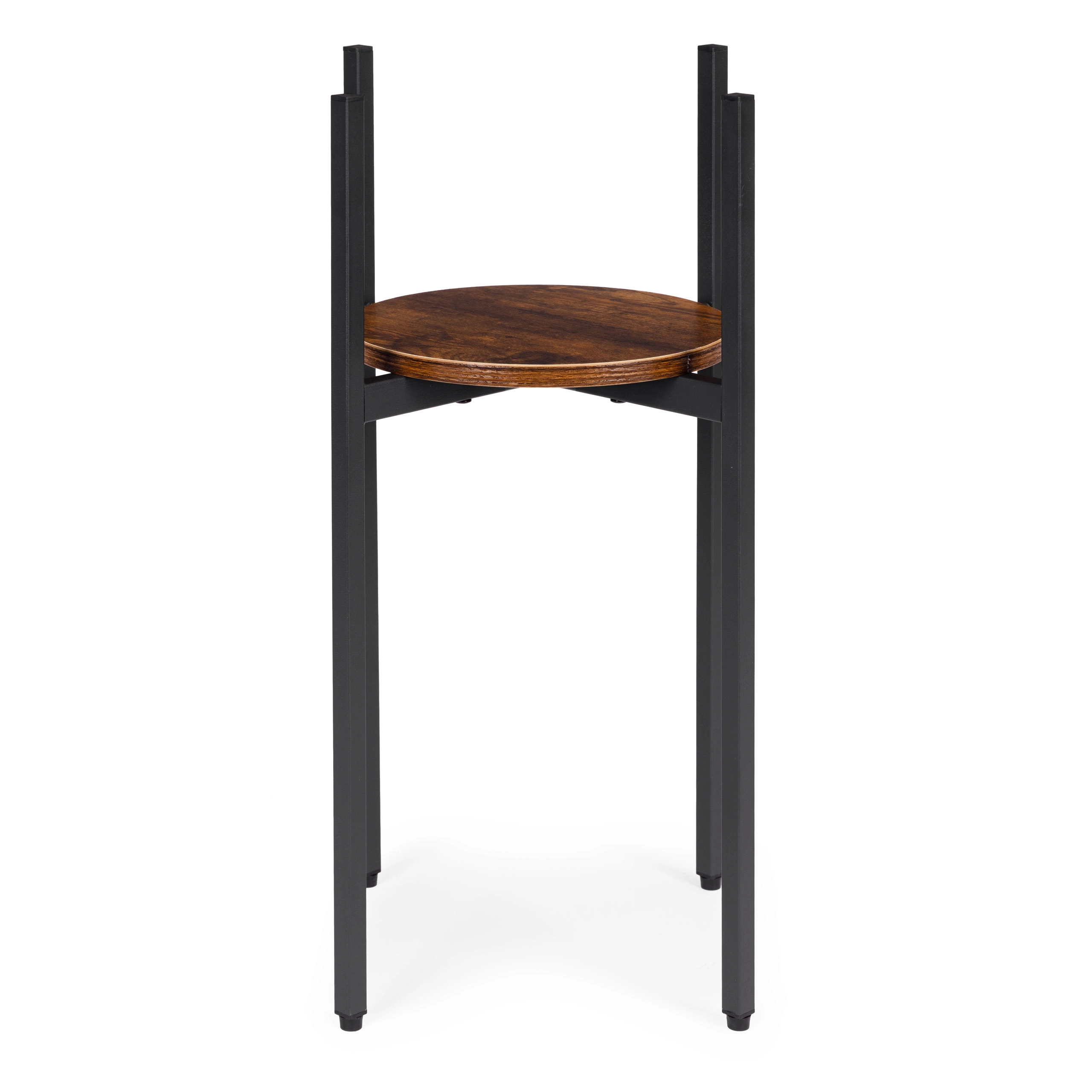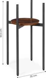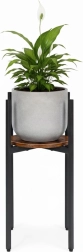 To visoko stojalo za rože v industrijskem slogu poudari vaše rastline ter doda notranjosti zračnost in eleganco. Prašno lakirano jeklo je odporno proti koroziji in praskam, medtem ko okrogla polica iz iverala v dekorju naravnega lesa poudarja loft karakter. Zaradi ozke tlorisne zasnove se zlahka umesti v majhne prostore ob oknu, ob kavču ali v vhodno vežo.