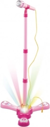Otroški karaoke mikrofon na stojalu z lučkami in zvokom – Roza
