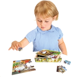 Ta komplet lesenih sestavljank s slikami domačih in kmetijskih živali prinaša bogato zabavo in osredotočenost za ljubitelje živali.