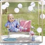 Privoščite svoji punčki popoln vsakodnevni outfit. Ta deluxe kavbojski komplet združuje udobje in trendovski videz: cvetlični potisk na hlačah z naramnicami doda šarm, bela majica z zlatimi motivi videz poživi, svetlo modra denim jaknica pa pogreje, ko postane hladneje. Mehke nogavičke/copatki dopolnijo celoto in zagotavljajo maksimalno udobje pri igri.
