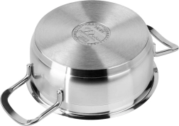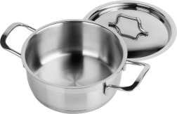 Praktičen nerjavno jeklen lonec s pokrovom s prostornino 1,2 l in premerom 16 cm za vsakodnevno kuhanje in dušenje. Zahvaljujoč večslojnemu akutermičnemu dnu enakomerno porazdeljuje toploto, je primeren za vse vrste štedilnikov, vključno z indukcijo in omogoča varčno kuhanje z minimalno količino maščobe. Masivna konstrukcija iz nerjavnega jekla 18/10, udobni ročaji in preprosto vzdrževanje v pomivalnem stroju ga naredijo za zanesljiv dodatek vsaki kuhinji.