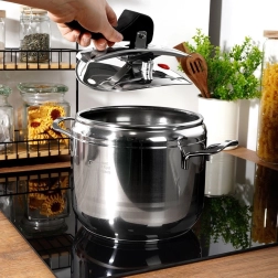 Ekonom lonec PROFI 5 l je odlična izbira za vsakodnevno kuhanje, ko želite prihraniti čas in energijo. Čas priprave jedi večkrat skrajša, hkrati pa pomaga ohraniti več okusa in hranil. Kakovostno nerjavno jeklo in troslojno dno zagotavljata odpornost, enakomerno segrevanje in dolgo življenjsko dobo.