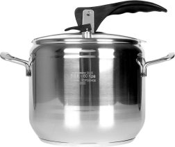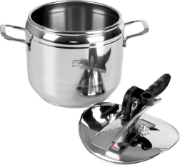 Dvojno varnostno zavarovanje, možnost regulacije pritiska in zanesljivo zaklepanje pokrova za brezskrbno kuhanje.