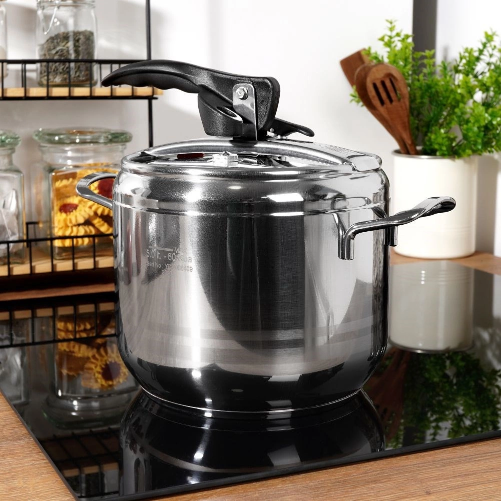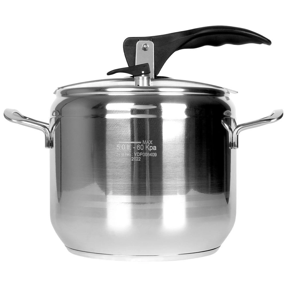 Hitro in zdravo kuhanje pod pritiskom, kadar koli ga potrebujete. Ta nerjavno jekleni ekonom lonec s prostornino 5 l ponuja hitro pripravo jedi, prihranek energije in varno delovanje zahvaljujoč dvema varnostnima ventiloma in zanesljivemu zaklepnemu sistemu. Primeren za vse vrste štedilnikov, vključno z indukcijo, ter s troslojnim dnom za enakomerno porazdelitev toplote.