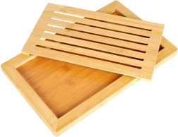 Elegantna deska za rezanje pekovskih izdelkov iz naravnega bambusa prinaša čistost in red v vašo kuhinjo. Odstranljiva zgornja mrežica omogoča, da drobtine padejo v spodnji pladenj, zato je po narezanem hlebu dovolj, da desko stresete in že je pospravljeno. Bambus je lahkoten, trden in na vlago odporen les, ki ne vpija vonjav in se hitro suši.