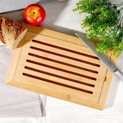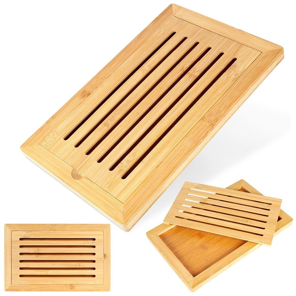 Bambusova deska za rezanje kruha z lovilcem drobtin 38 × 24 cm