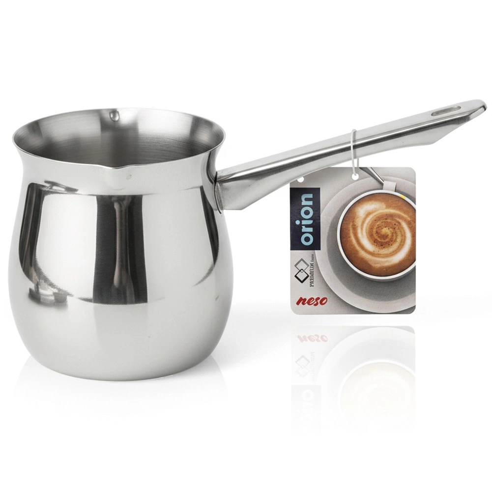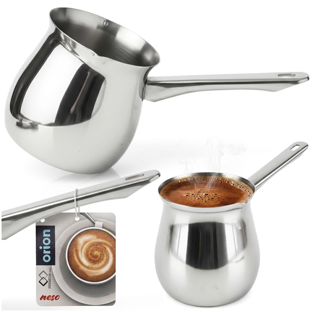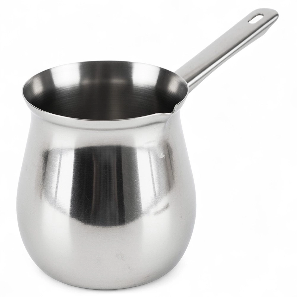 Odkrijte pristni okus turške kave z elegantnim nerjavnim lončkom s prostornino 600 ml. Zahvaljujoč robustni konstrukciji iz nerjavnega jekla zagotavlja enakomerno segrevanje, enostavno čiščenje in dolgo življenjsko dobo. Praktičen izljev omogoča natančno in čisto prelivanje, medtem ko poseben zgornji ovratnik pomaga preprečiti prelitje med vrenjem.