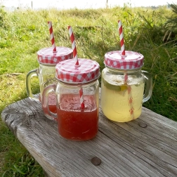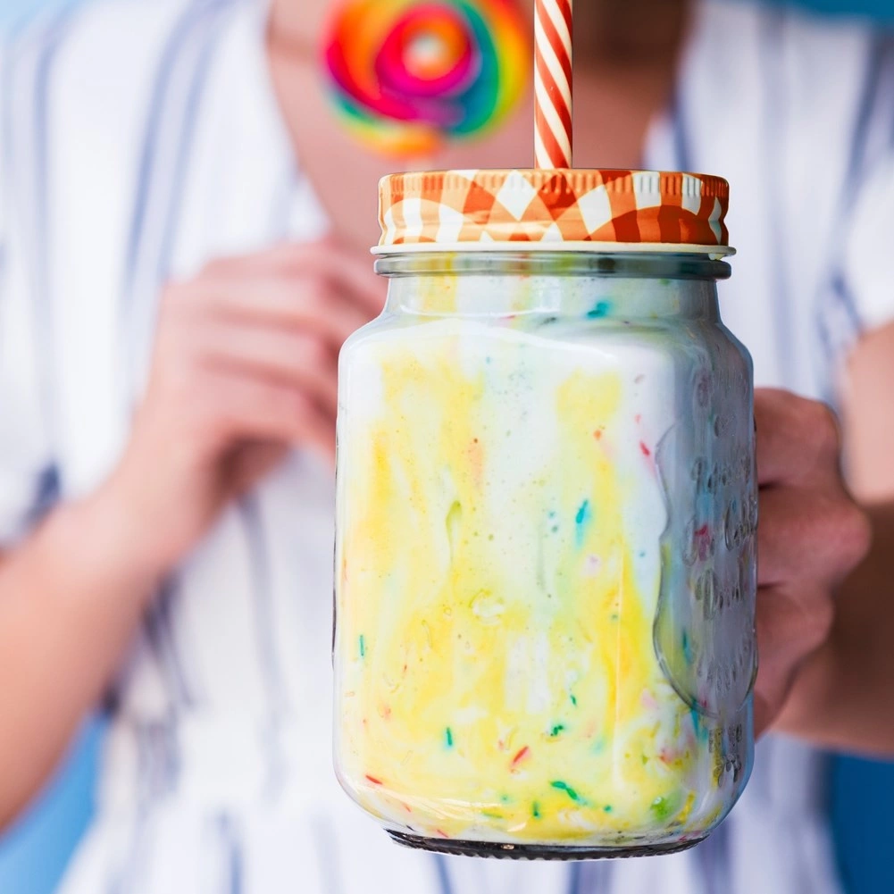 Odličen za limonade, smoothieje in napitke s sadjem ter ledom – praktičen ročaj in slamica za udobno srkanje.