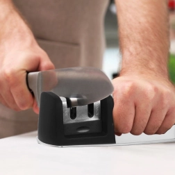 Brusilec je univerzalna izbira za nerjaveče, prevlečene jeklene in keramične nože ter odlično opravi delo z običajnimi kuhinjskimi noži, vključno s kuharskimi. Zaradi pametne zasnove in enostavnega vodenja rezila boste dosegli konzistentne rezultate v le nekaj potegih.