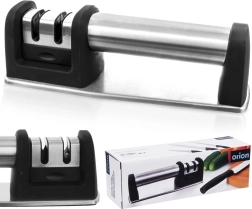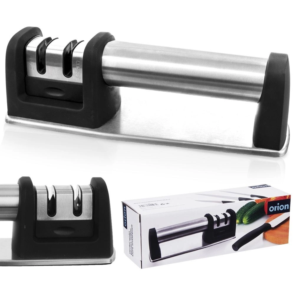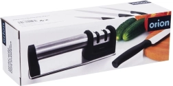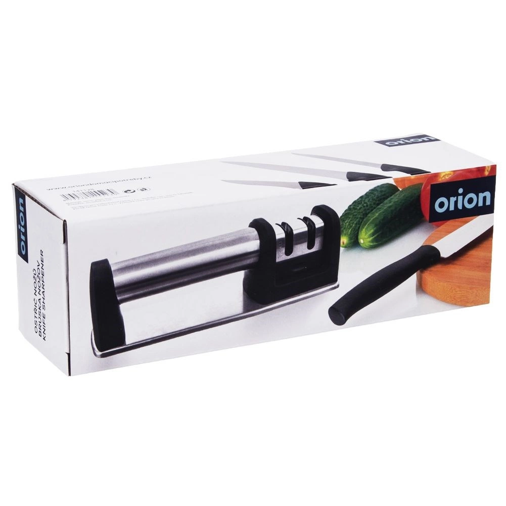 Ohranjajte svoje kuhinjske nože v vrhunski kondiciji z dvostopenjskim brusilcem ORION. Robusten preplet nerjavnega jekla in odporne plastike zagotavlja dolgo življenjsko dobo, medtem ko protizdrsni podstavek in ergonomski ročaj poskrbita za varen in stabilen oprijem pri brušenju. Dve ločeni reži omogočata najprej hitro obnovo ostrine in nato precizno poliranje.