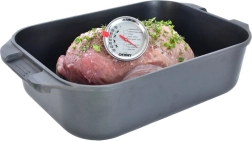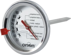 Zanesljiv kuhinjski termometer z nerjavno sondo 12 cm meri neposredno v notranjosti mesa in zagotovi, da bodo pečenke, perutnina in steak-i pripravljeni natančno tako, kot imate radi. Čitljiv analogni številčnik omogoča hiter odčitek temperature v razponu 50–90 °C, idealno za večino vrst mesa in toplih jedi.