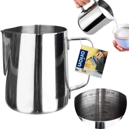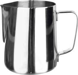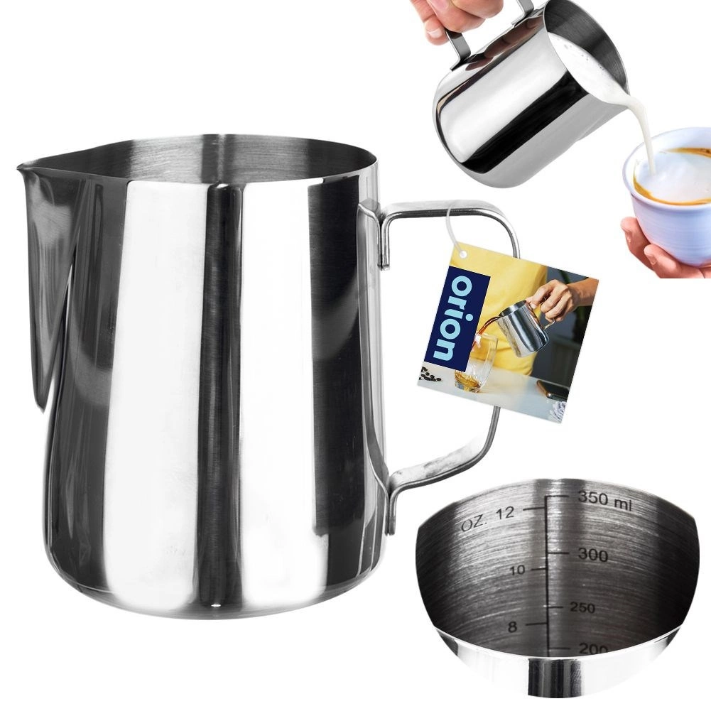 Nerjavni vrč za mleko s prostornino 350 ml je idealna izbira za domačo in kavarniško pripravo kave. Z natančnim izlivom zlahka nalijete mleko v cappuccino ali latte, notranja merilna lestvica na 50 ml pa zagotavlja pravilno odmerjanje potrebne količine. Trden ergonomski ročaj olajša rokovanje tudi pri vroči vsebini.
