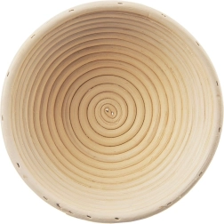 Okrogla ratanova košara s premerom 21 cm za popolno vzhajanje domačega kruha do teže 1,2 kg. Iz naravnega ratana v bež barvi, ki je zračen, lahek in na skorji ustvari dekorativen spiralni vzorec. Idealna za stabilno obliko hlebca, enakomerno vzhajanje in preprosto prelaganje testa.