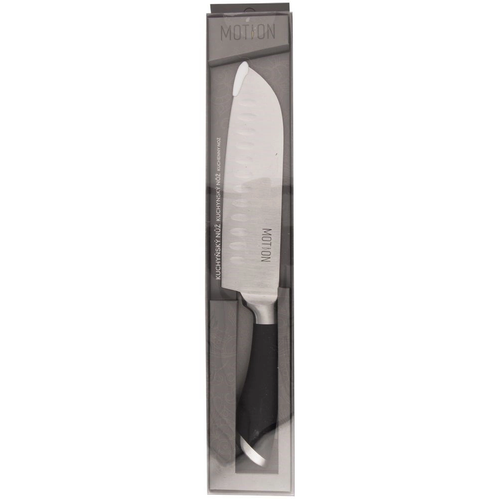 Nož santoku MOTION združuje ostro nerjaveče rezilo z udobnim, nedrsečim ročajem v elegantni črni barvi. Zaradi uravnotežene konstrukcije in oblike rezila je odličen za natančno rezanje, sekljanje in rezanje na rezine. Rezilo iz kakovostnega nerjavečega jekla ohrani ostrino in zlahka prodira skozi sestavine.