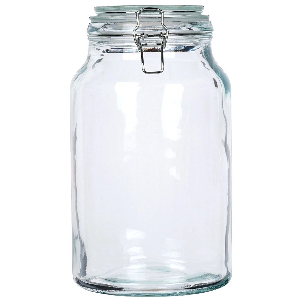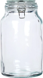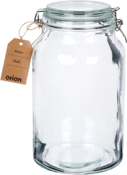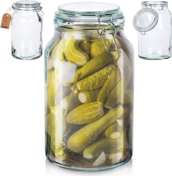 Praktična steklena posoda s prostornino 4,2 l s kovinsko sponko in belim gumijastim tesnilom ponuja neprepustno zapiranje, debelo steklo in vsestransko uporabo za shranjevanje in vlaganje. Zahvaljujoč prosojnemu steklu zlahka preverite vsebino, široko grlo pa olajša polnjenje in čiščenje.