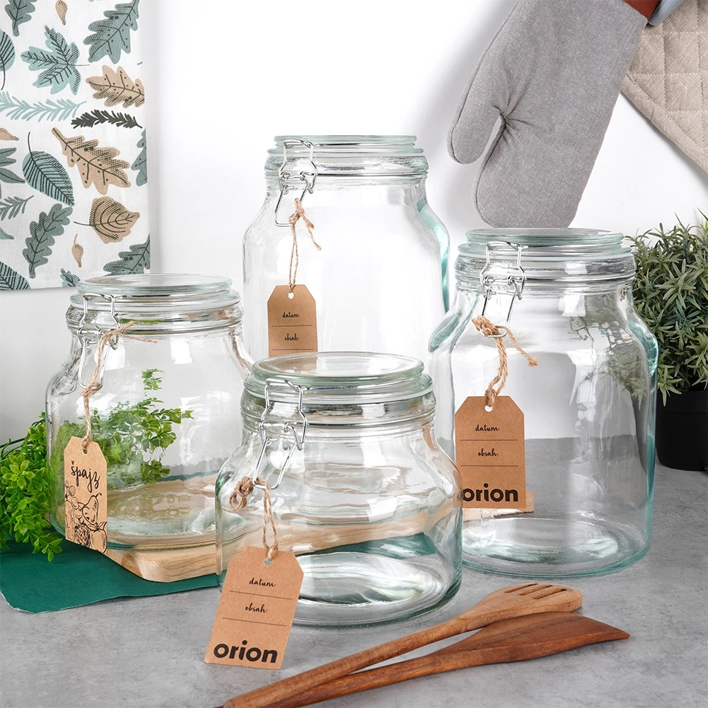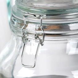 Ta velika steklena posoda s patentnim zapiranjem je idealna za vsakodnevno uporabo v kuhinji. Debelo steklo, kakovostne kovinske sponke in gumijasto tesnilo zagotavljajo zanesljivo neprepustnost, ki ščiti živila pred vlago in podaljšuje njihovo svežino, okus in aromo. Zahvaljujoč širokemu grlu (12 cm) je rokovanje udobno – zlahka jo napolnite in temeljito očistite.