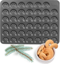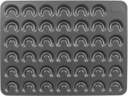 Ta kakovosten kovinski model omogoča hitro in učinkovito peko majhnih rogljičkov z popolnoma enotno obliko. Nelepljiv premaz zmanjšuje uporabo maščobe, preprečuje prijemanje in olajša izdiranje brez poškodovanja krhkega testa. Z dimenzijami 42 × 32 × 0,7 cm in 41 vdolbinami prihranite čas in energijo.