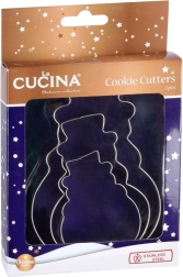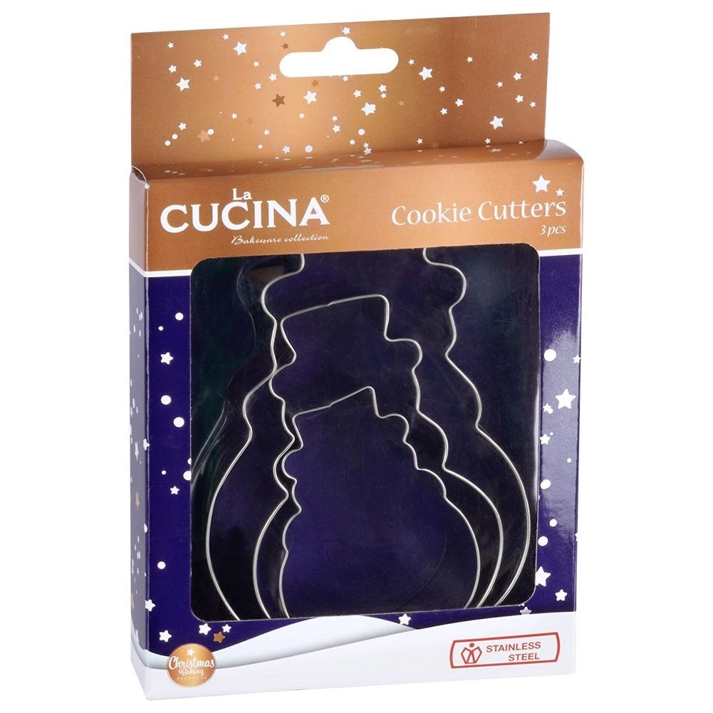 Set treh kakovostnih modelčkov za izrezovanje v obliki snežaka bo razveselil vsakega ljubitelja peke. Izdelani so iz vzdržljivega nerjavnega jekla, zato so trdni, higienski in pripravljeni na vsakoletni praznični maraton. Tri praktične velikosti (velika 13 × 8,5 × 2,5 cm, srednja 10 × 7 × 2,5 cm, majhna 7,5 × 5 × 2,5 cm) omogočajo ustvarjanje učinkovitih večplastnih dekoracij in kompletov piškotov.