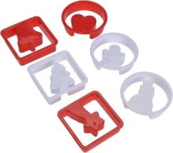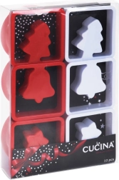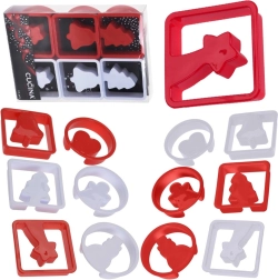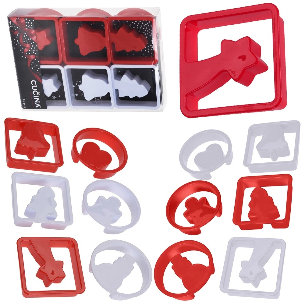 Set 12 modelčkov za enostavno pripravo božičnih piškotov in medenjakov. Vsebuje 6 kvadratnih in 6 okroglih okvirjev z božičnimi motivi. Vzdržljiva plastična izvedba, vsestranska uporaba za testo in fondant ter možnost pomivanja v pomivalnem stroju.