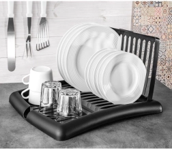 Moderna črna izvedba se poda v moderne in klasične interierje. Konstrukcija iz kakovostne plastike je lahka, čvrsta in brez tveganja korozije. Ko je zloženo, stojalo zavzame minimum prostora – idealno za manjše kuhinje in gospodinjstva z omejenim prostorom.