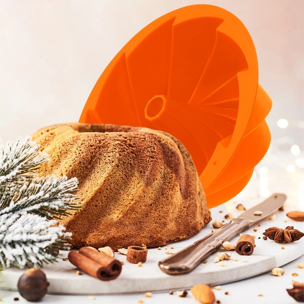 Spiralno-cvetlični relief in sredinski komin za enakomerno peko ter dekorativen videz vsakega šarklja.