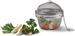Poenostavite kuhanje z univerzalnim cedilom za začimbe, ki zagotavlja intenziven okus brez plavajočih zelišč na krožniku. Dovolj je, da ga napolnite z začimbami, vstavite v lonec ali čajnik in po kuhanju preprosto odstranite. Fina, gosto tkana mrežica učinkovito prepušča aromo, hkrati pa zadrži tudi majhne koščke začimb.