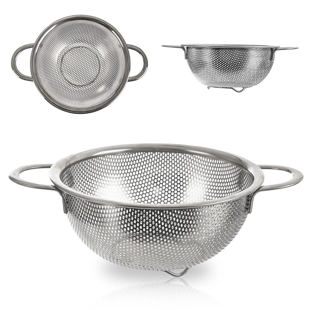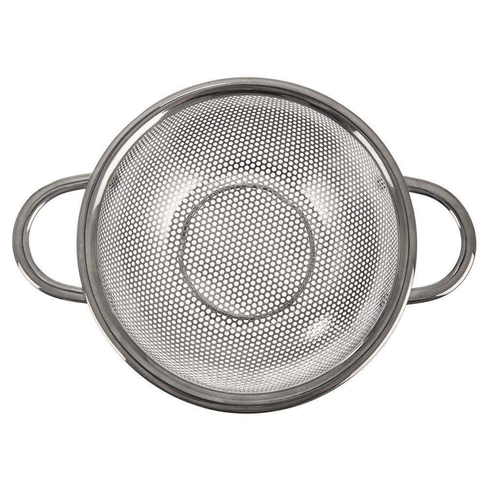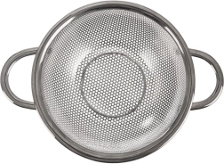 Univerzalno nerjavno cedilo v obliki sklede s premerom 16,5 cm in razširjenim robom 22,5 cm je idealno za pranje sadja in zelenjave, cejenje testenin in riža. Zahvaljujoč dvojima udobnima ročajema in stabilnemu podstavku je z njim enostavno rokovati, je odporno in primerno za pomivalni stroj.