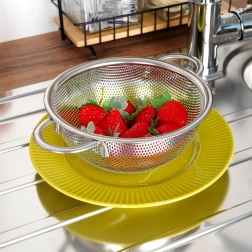 Povišane nogice držijo cedilo stabilno na mestu, zato ga lahko varno odložite tako v pomivalno korito kot na delovni pult.