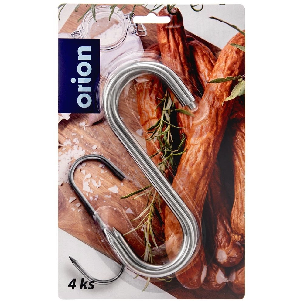 Praktičen komplet štirih nerjavečih S‑kljuk v velikosti 15 × 12 cm in premera 0,5 cm za prekajevalnice. So odporne, ostro zaključene za enostavno nabadanje mesa, varne za stik z živili in primerne za pomivalni stroj. Zaradi visoke nosilnosti zanesljivo držijo tudi večje kose mesa in se prilegajo večini prekajevalnic.