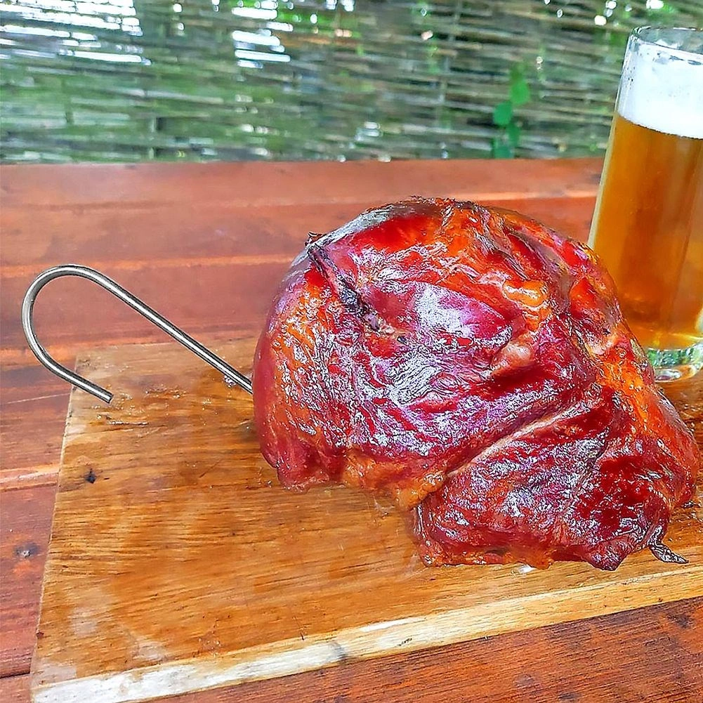 Ena stran kljuke je ostro nabrušena, zato zlahka in natančno prodre skozi meso ter ga varno drži med prekajevanjem.