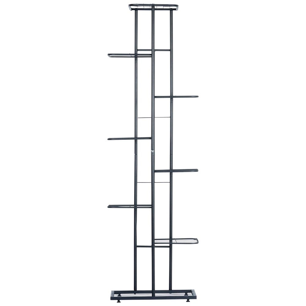 Odporna kovinska konstrukcija v mat črni barvi se ponaša z enostavnim vzdrževanjem in dolgo življenjsko dobo. Stojalo ponuja premišljene dimenzije polic za različne vrste lončnic – od listnatih rastlin, sukulentov, kaktusov do vzpenjavk. Odlično je tudi za dekoracije, okvirje in drobne dodatke.