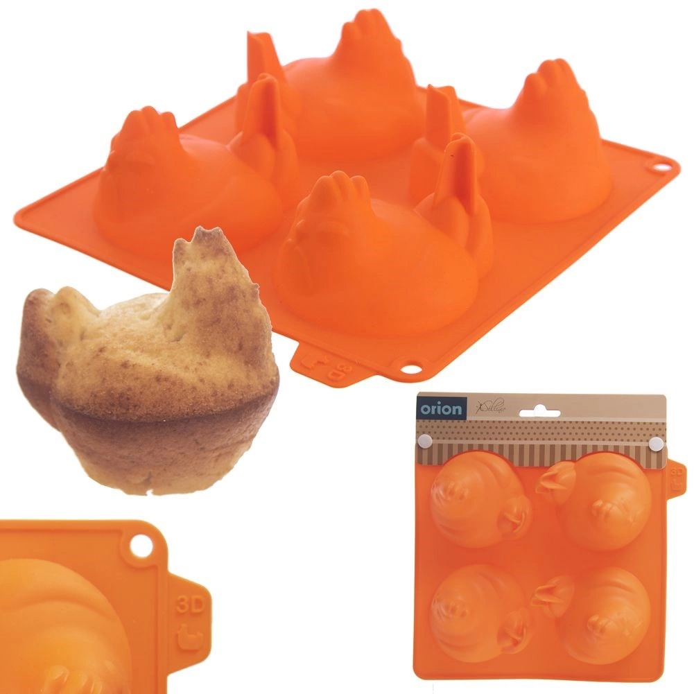 Vesel silikonski model ustvari štiri sladke dobrote v obliki piščančka v 3D izvedbi. Izdelan je iz odpornega silikona, primeren za pečico, mikrovalovko in zamrzovalnik ter se zlahka čisti. Odličen za velikonočno in celoletno peko. Ne lepi, preprosto iztikanje, temperaturna odpornost -40 do +220 °C in primeren za pomivalni stroj.