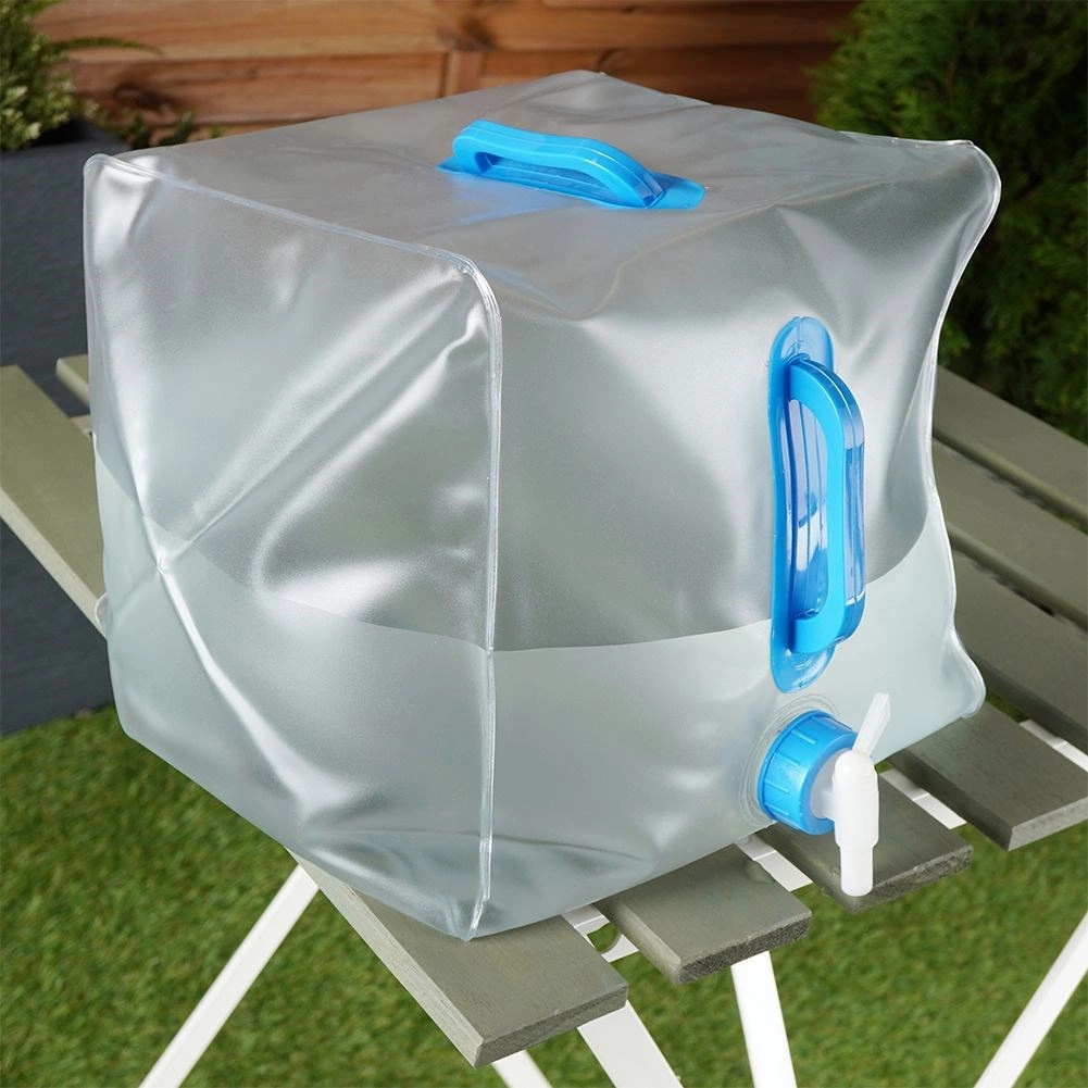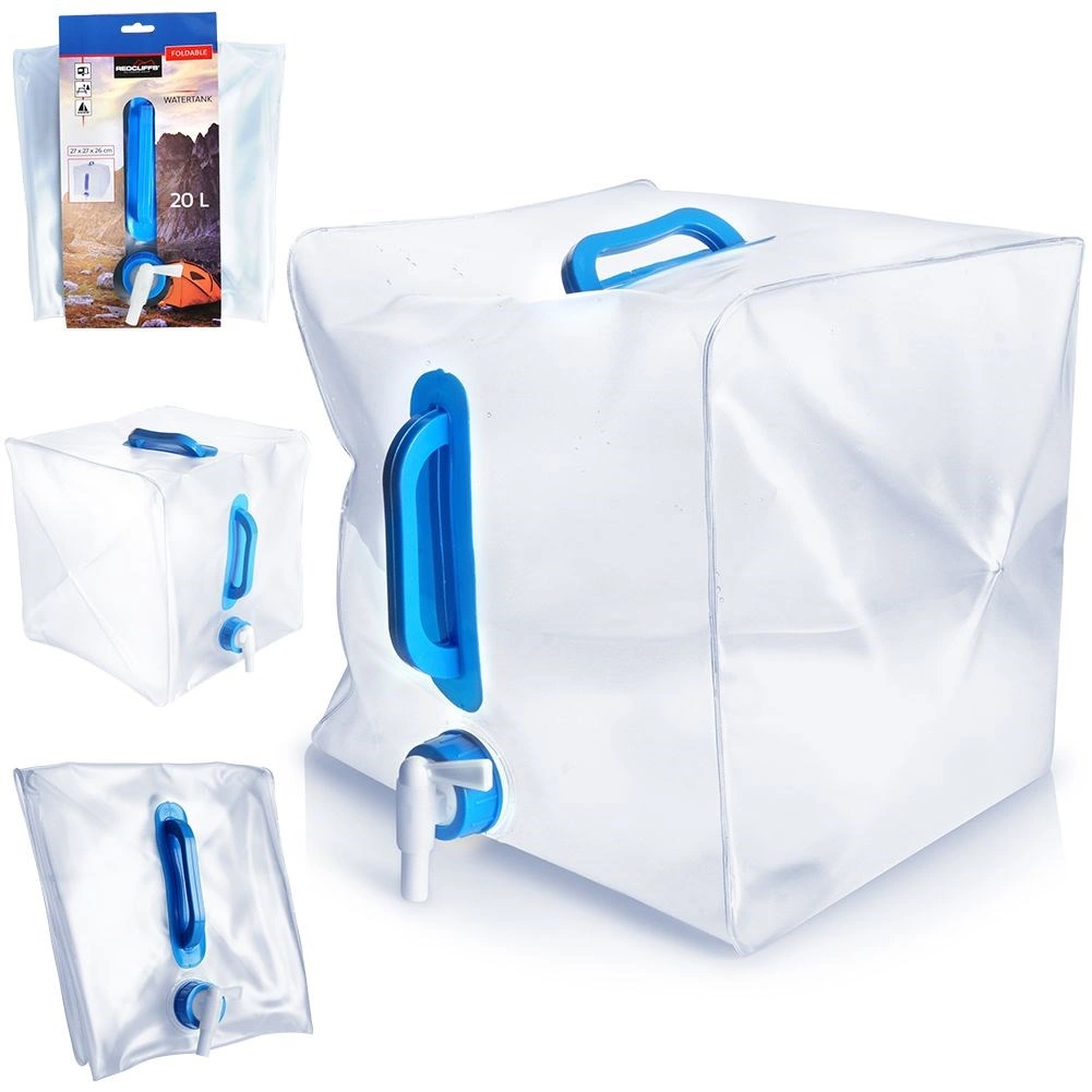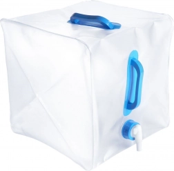 Zložljiv kanister za pitno vodo s prostornino 20 litrov je izdelan iz kakovostne prozorne plastike, ki je odporna in hkrati lahka. Vgrajena pipica omogoča nadzorovano nalivanje brez polivanja, ergonomska ročaja pa olajšata prenašanje tudi polnega rezervoarja.