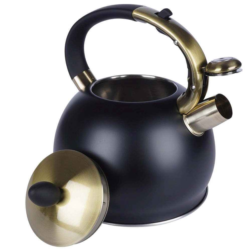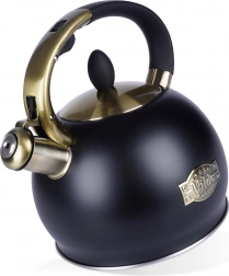 Ta stilski čajnik je izdelan iz kakovostnega nerjavnega jekla, ki je trpežno in nevtralno po okusu. Zaradi kombinacije mat črnine in zlatih poudarkov bo postal dizajnerski okras vaše kuhinje – naj bo moderna ali klasična. Praktičen odstranljiv pokrov olajša dolivanje vode in čiščenje.