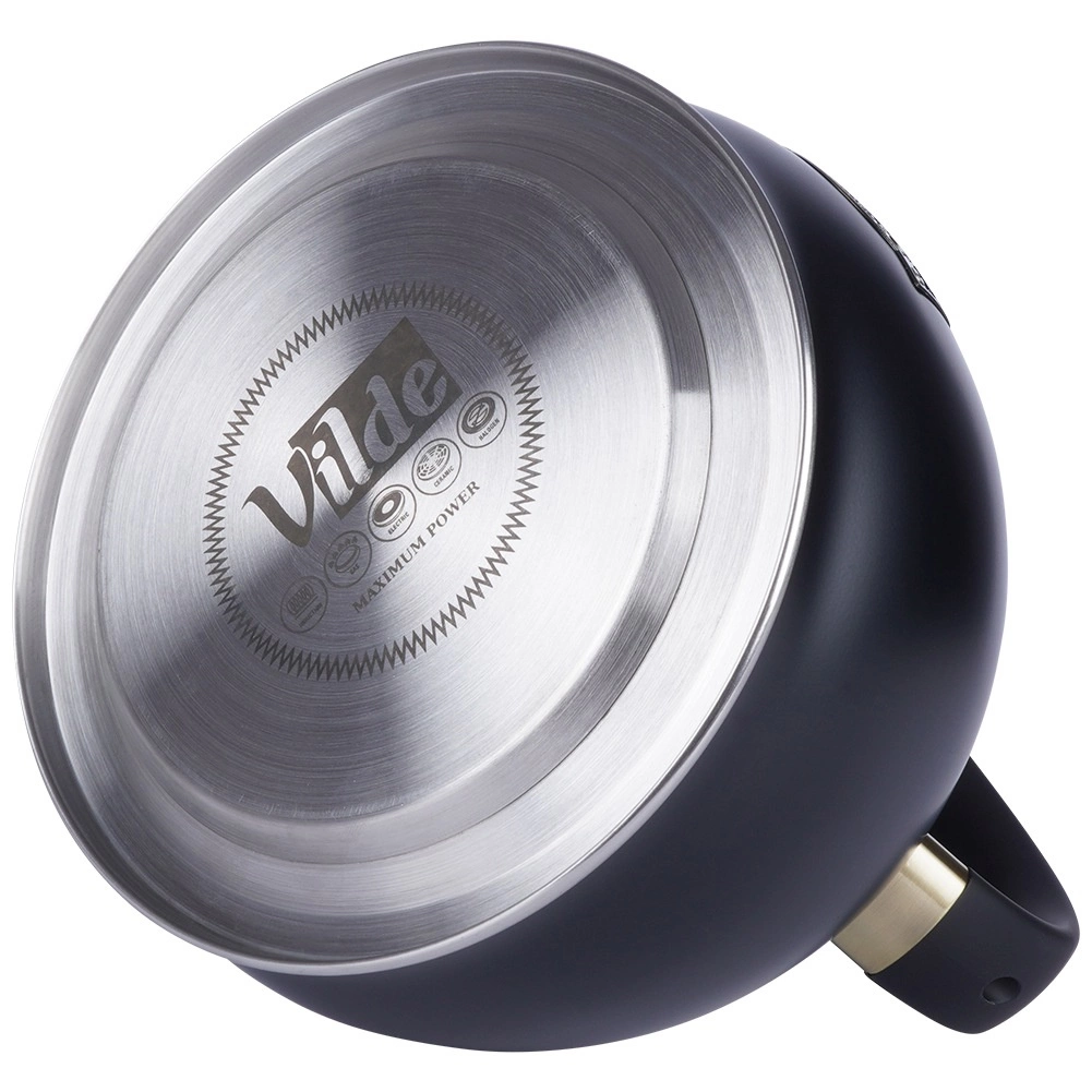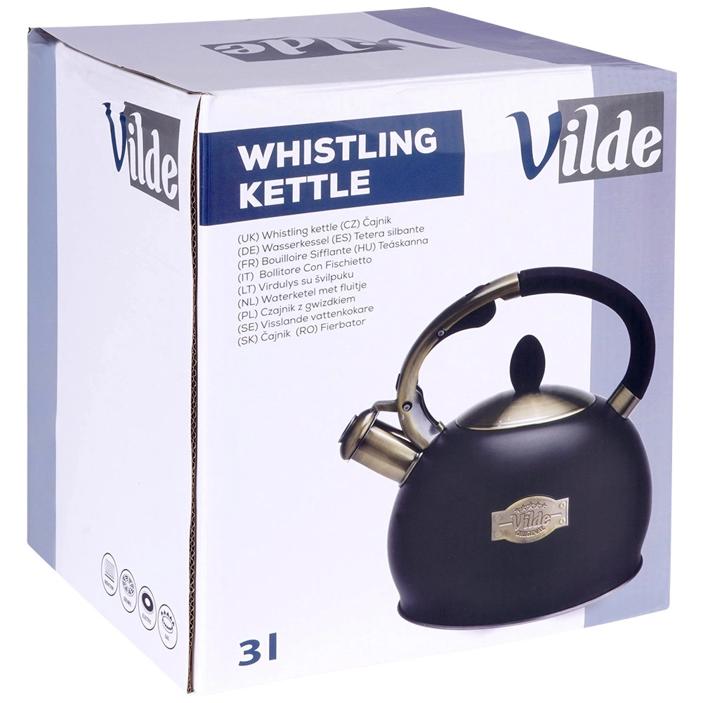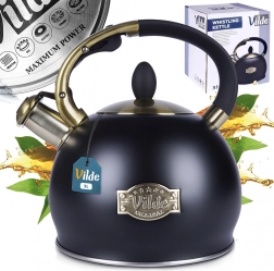 Mat črnina v kombinaciji z medeninastimi detajli in emblemom Vilde daje čajniku brezčasen videz, ki se odlično poda tako v moderno kot klasično kuhinjo.
