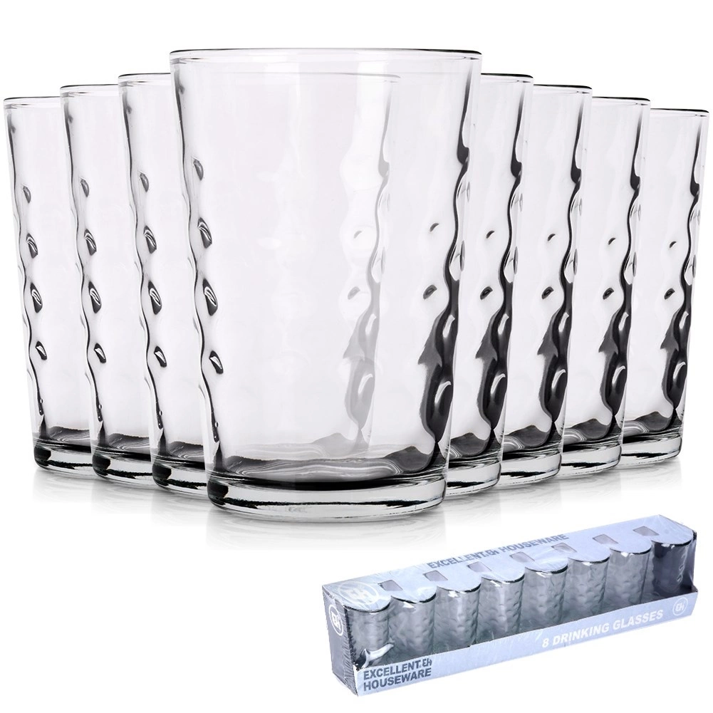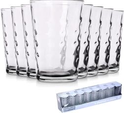 Eleganten komplet osmih kozarcev s prostornino 200 ml z dekorativnim reliefom za boljši oprijem. Primerno za vodo, limonado, sokove in koktajle. Izdelano iz kakovostnega debelega stekla, vsestranska uporaba doma in v gastronomiji ter enostavno čiščenje v pomivalnem stroju.